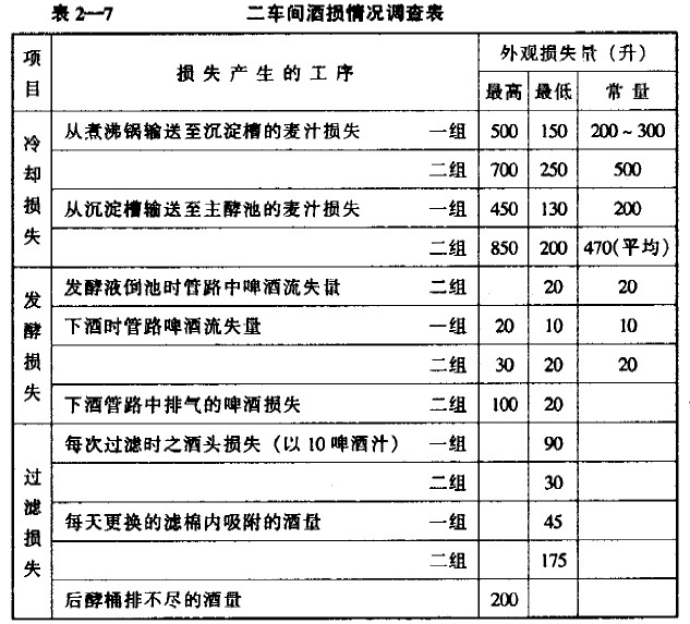 首先由煮沸鍋至沉淀槽的熱麥汁損失,操作人員漫不經(jīng)心,測出外觀平均損失童高達(dá)507升。其次由沉淀槽至前酵池的麥汁損失,因放人下水道和麥汁溢出池子等原因,兩組測定的總損失量為500升。