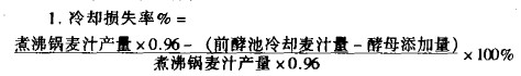 當(dāng)計(jì)算各品種之綜合冷卻損失率時(shí),140麥汁產(chǎn)量應(yīng)換算成100熱麥汁產(chǎn)童后再與其他濃度之熱麥汁產(chǎn)量相加。