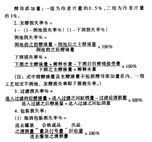第四條:酒損的統(tǒng)計(jì)和計(jì)算,按《啤酒工業(yè)生產(chǎn)專業(yè)統(tǒng)計(jì)計(jì)算方法》中的有關(guān)規(guī)定和公式進(jìn)行。