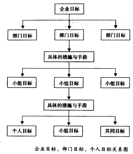 在設(shè)定目標(biāo)的時候,企業(yè)首先建立總目標(biāo)與相應(yīng)的實施措施;部門主管一方面要接受總目標(biāo),同時還要更詳細(xì)地研究總目標(biāo)的各項實施措施,在此基礎(chǔ)上設(shè)定部門自 身的目標(biāo),并制定自己的具體執(zhí)行指施,依此類推。部門內(nèi)各項目組負(fù)責(zé)人、一般成員的目標(biāo)設(shè)定也都是在接受上級目標(biāo)的基礎(chǔ)上,設(shè)定自身目標(biāo)與具體執(zhí)行措施。