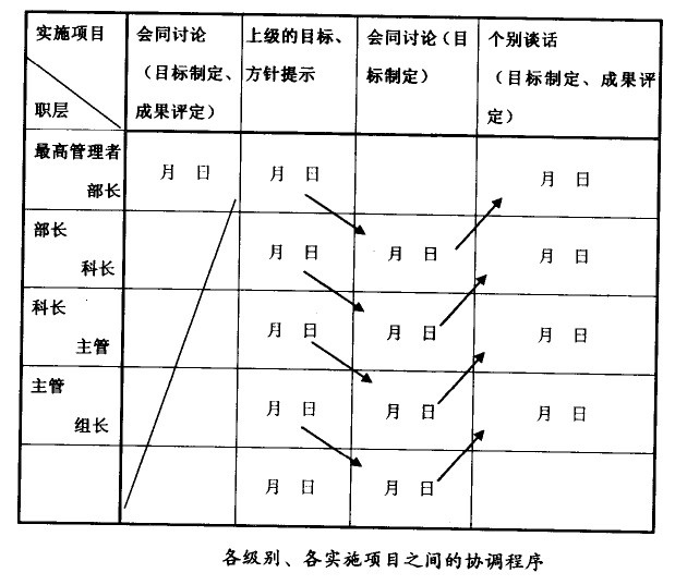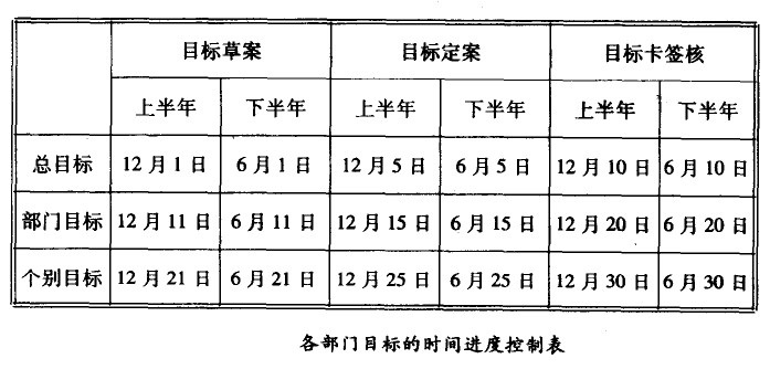 目標(biāo)管理一旦引進(jìn)后,將產(chǎn)生各種例行的行政工作,這就需要實(shí)實(shí)在在地去執(zhí)行。因此,制定實(shí)施目標(biāo)瞥理的時(shí)間進(jìn)度表,就顯得非常必要。