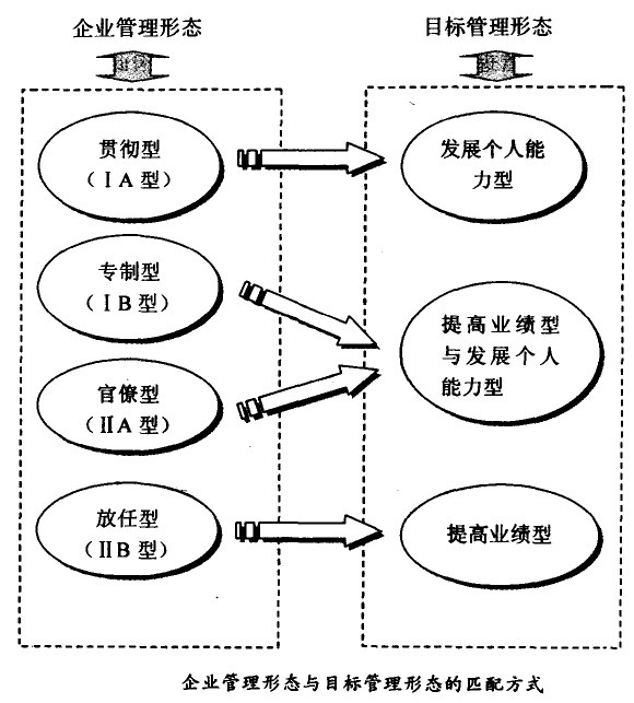 在決定采用何種目標(biāo)管理方式時(shí),企業(yè)首先要經(jīng)過(guò)自我分析,了解企業(yè)是偏向哪一種性質(zhì)的管理形態(tài),然后根據(jù)以上對(duì)各種形態(tài)的分析,設(shè)計(jì)選擇適合本企業(yè)的目標(biāo)管理形態(tài)。