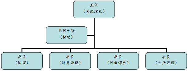 3.1公司設(shè)置員工合理化建議推行委員會(如下圖),由總經(jīng)理擔(dān)任員工合理化建議推行委員會主任,特助任執(zhí)行干事,各部門負(fù)責(zé)人任委員。對于專業(yè)性很強(qiáng)和特大型提案,必要時外部聘請有關(guān)技術(shù)人員和專家進(jìn)行評審。